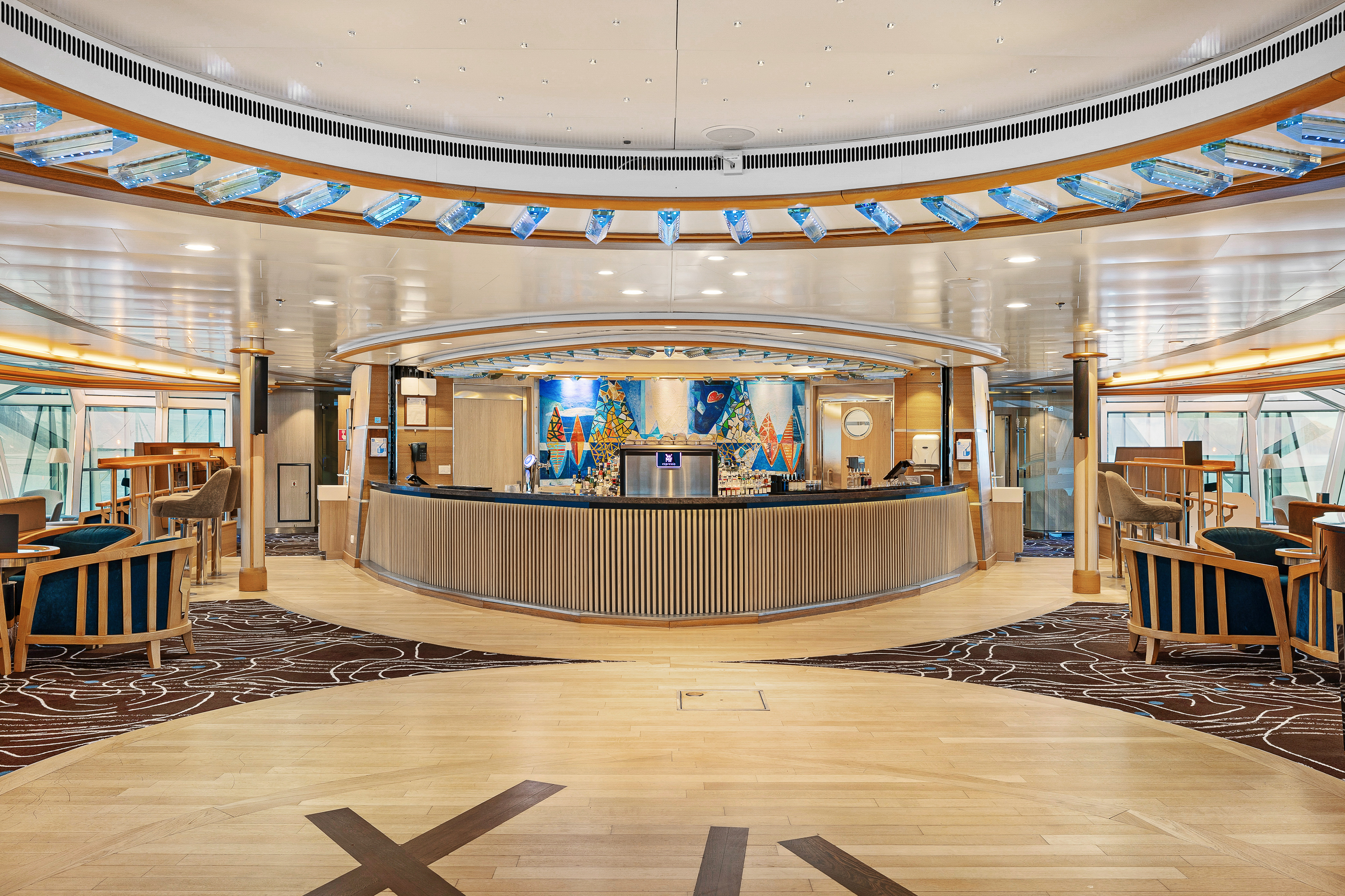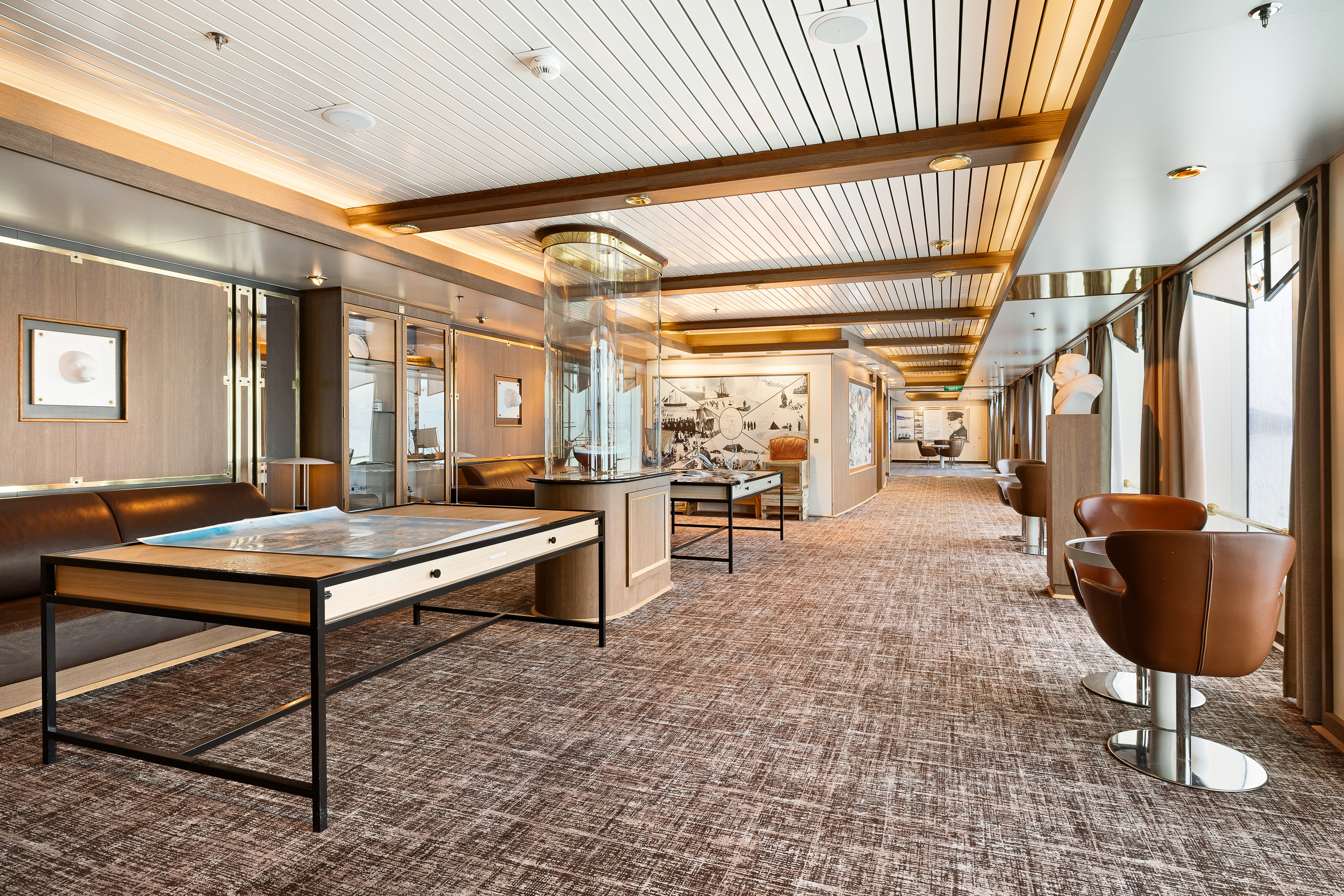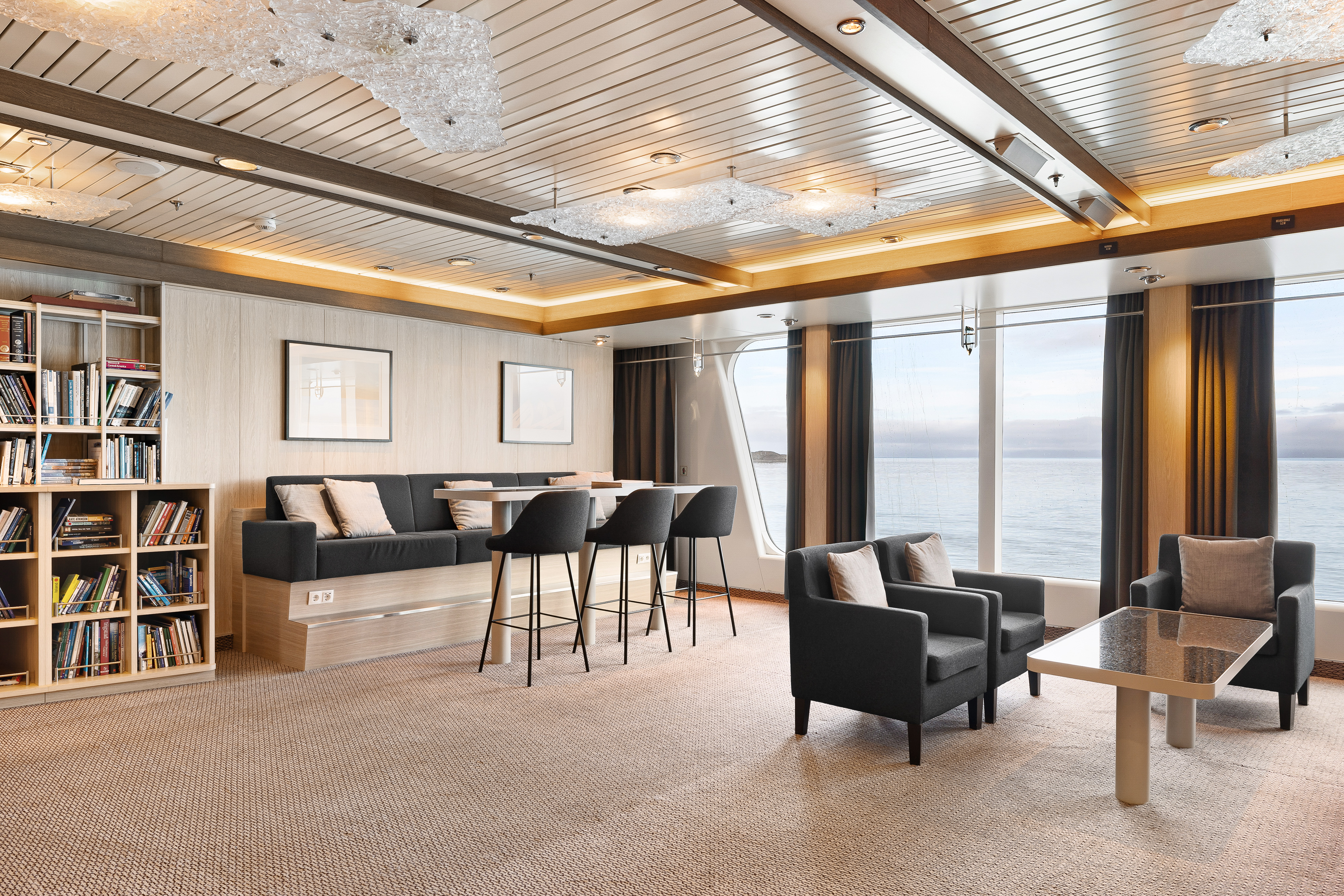 Situated at the stern of the ship, the Explorer Lounge & Bar is the perfect spot to relax with talk with your fellow explorers and take in the sweeping panoramic views through the floor-to-ceiling windows.