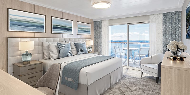 The interior design of American Maverick features a serene color palette, creating a tranquil ambiance throughout. Guests can unwind in a range of large standard staterooms, suites, or singles, each equipped with a private balcony for enjoying scenic views of the New England Coast.