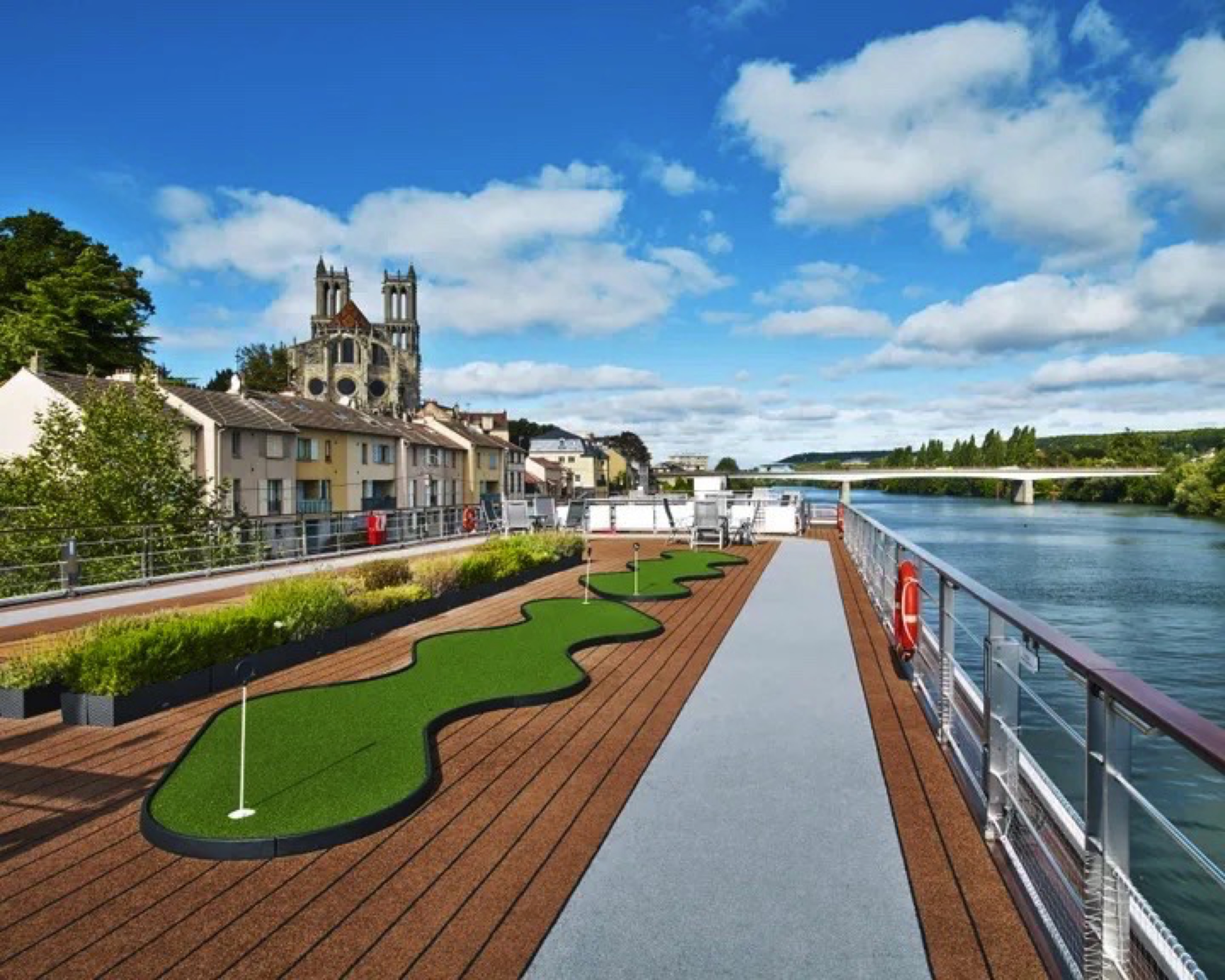 On top of the ship, take in 360-degree views as you relax on the Sun Deck. Exercise en plein air on our walking track. And enjoy the fragrances of our onboard herb garden, harvested daily by the culinary staff and infused in our authentic regional dishes. For safety reasons, guest access to the Sun Deck is restricted during lock transits and when the ship is sailing under low bridges.