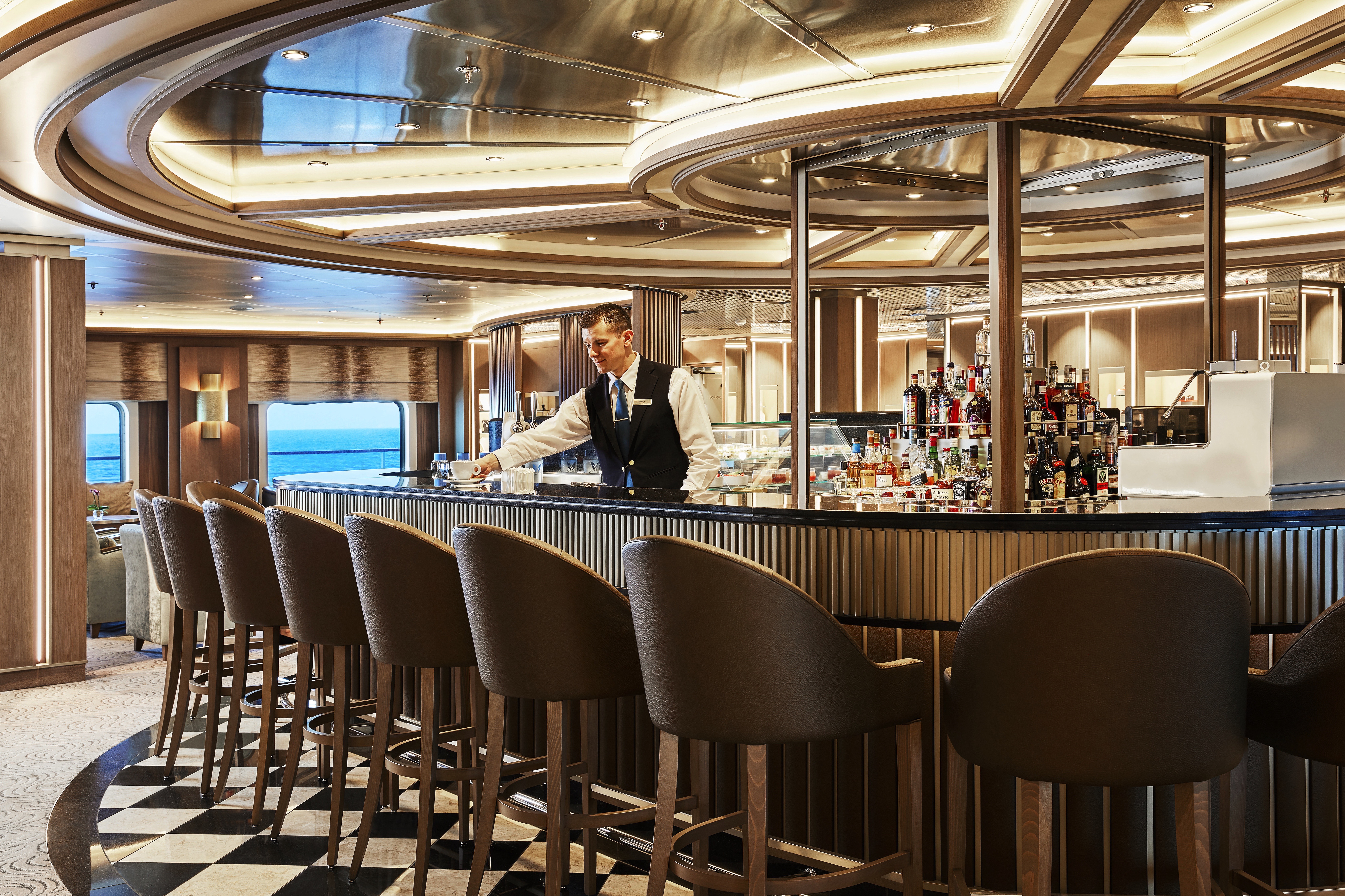 The Atrium aboard provides a unique space at the heart of deck 5. Filled with natural light, a beautiful and spacious bar blurs the line between traditional bar and modern brasserie, and offers an all-day venue for drinks and snacks in a relaxed, welcoming atmosphere. The elegant café serves light bites, as well as smoothies, fresh juices, bespoke cocktails, and wine by the glass from our extensive drinks menu, and it is the ideal place to meet your friends, grab a coffee or aperitif, and plan your next adventures.