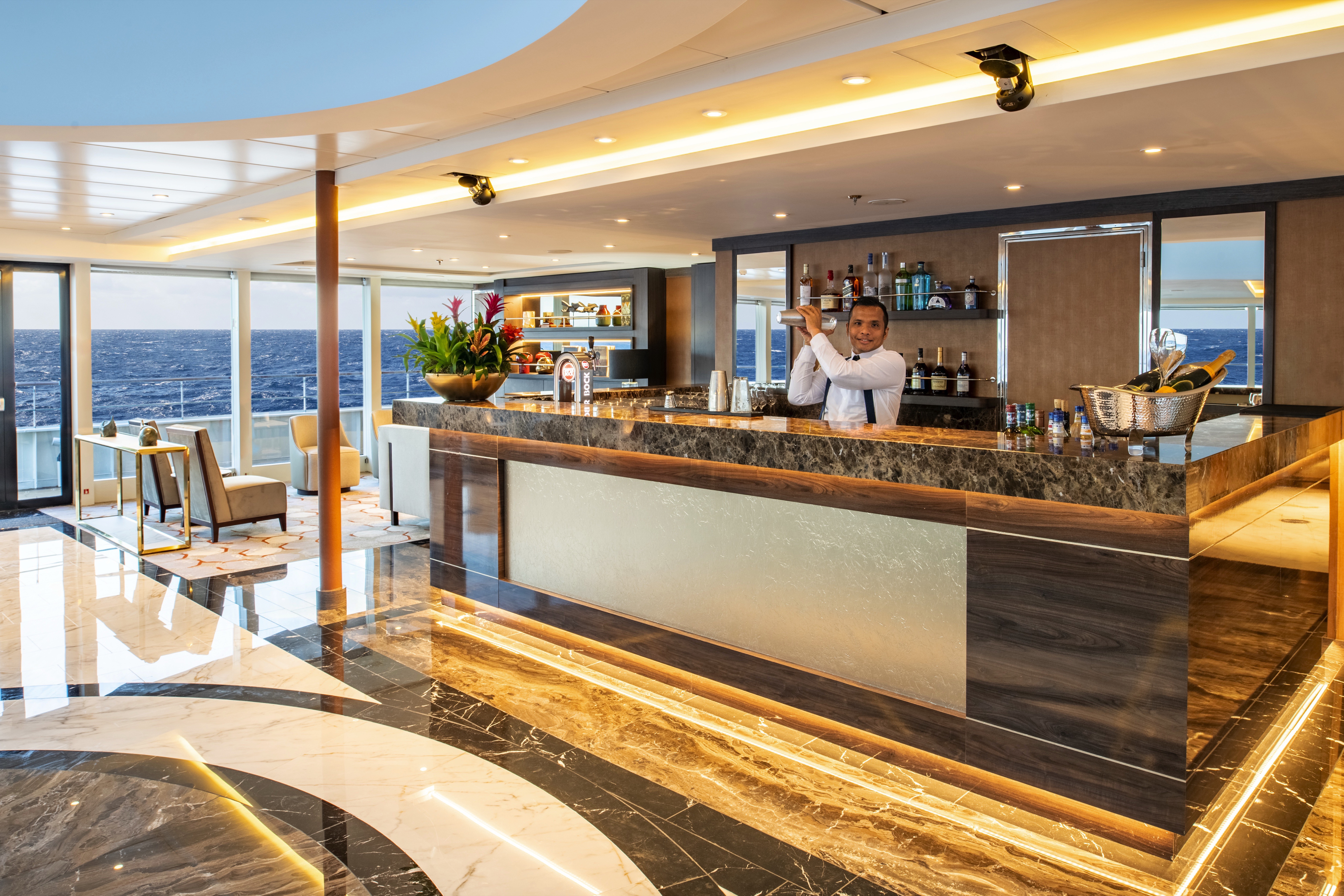 The glass-domed Observation Lounge on Deck 7 is a comfortable spot to relax and enjoy panoramic polar views.