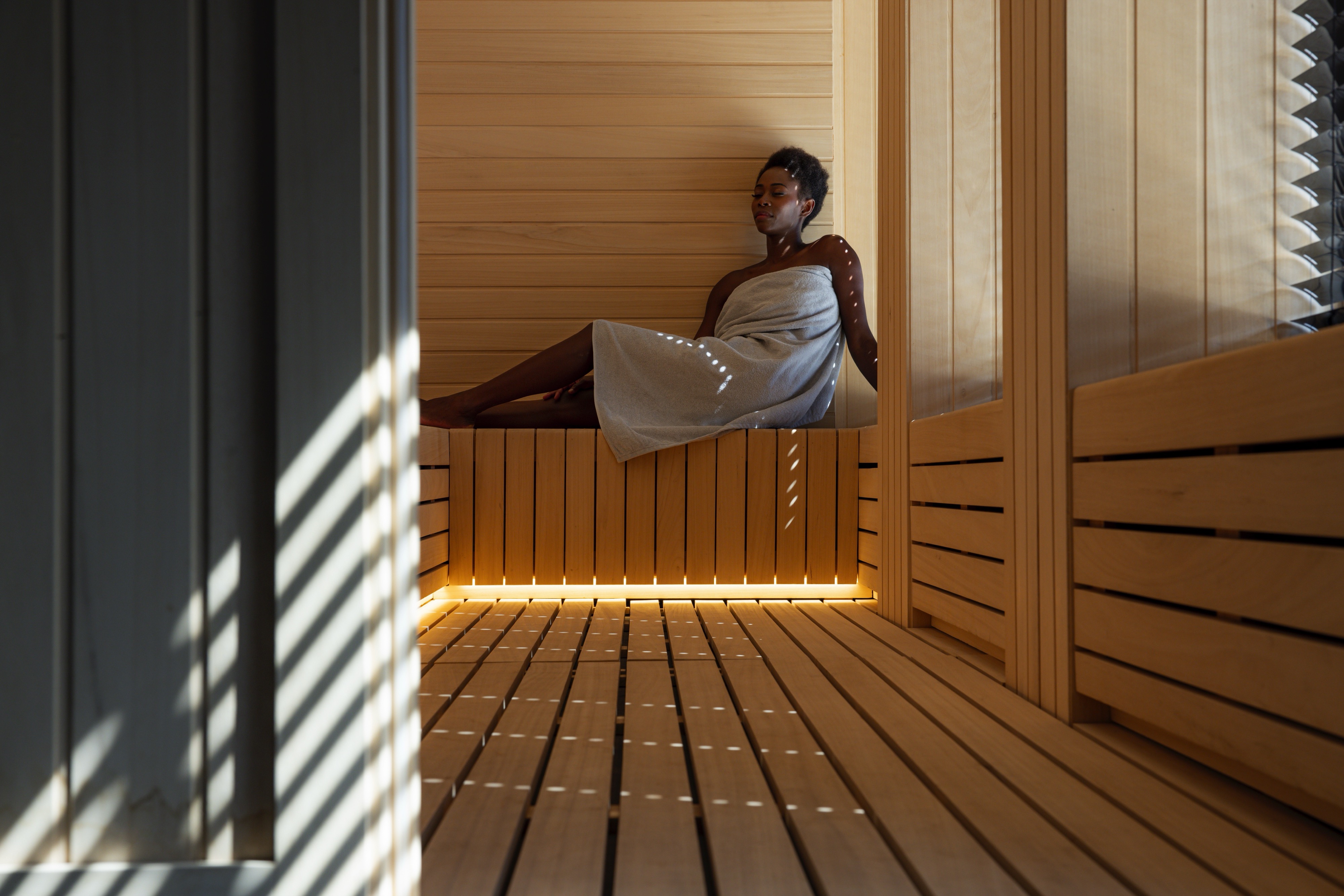 Perfectly juxtaposed luxury: guests can rest and relax in the comfort and warmth of the sauna while enjoying the spectacular views outside.