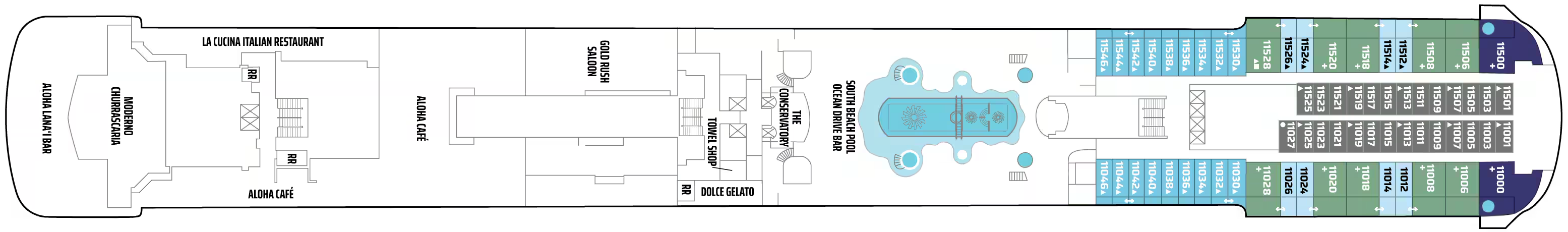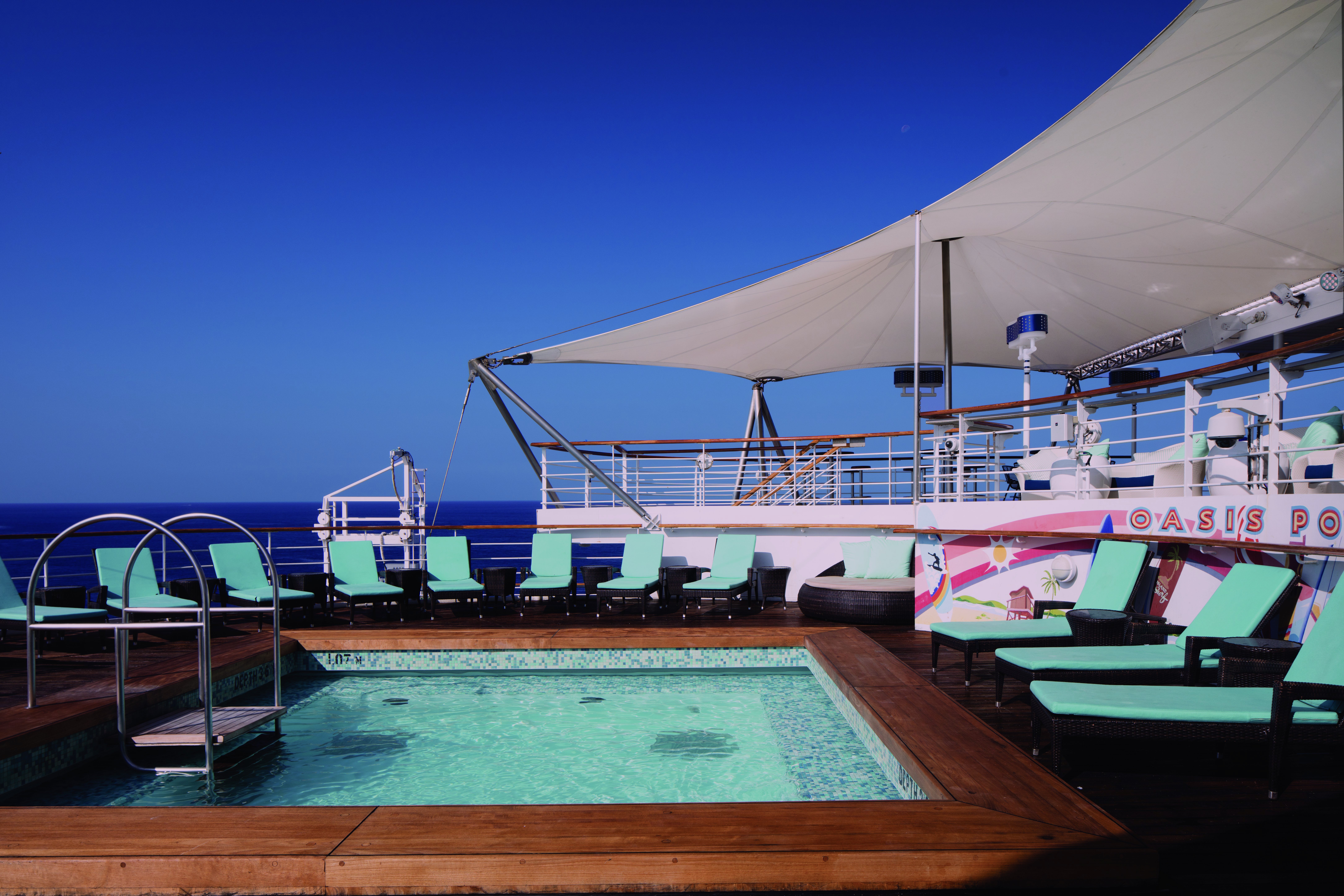 Pride of America's ode to Miami's South Beach, includes two glimmering outdoor pools and four hot tubs.