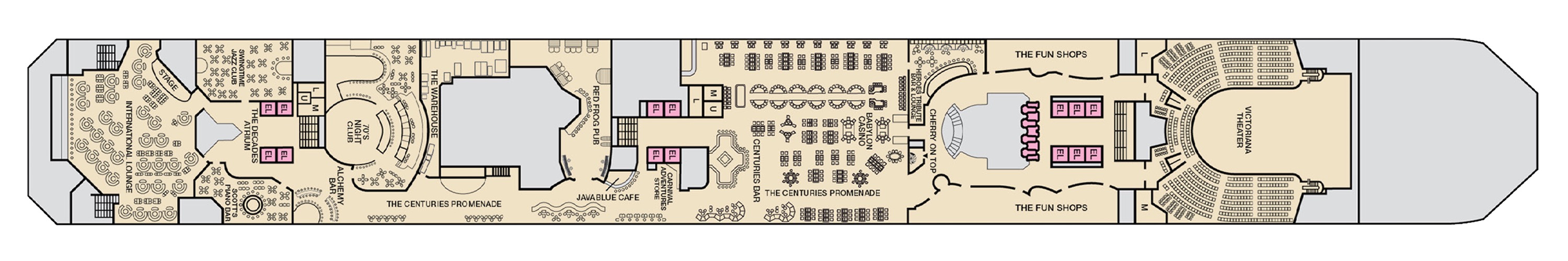 Here’s where you come in! The Atrium — the entrance to the ship and to vacation itself — is your first impression of all the fun to come. We make sure that this, the very heart of the ship, screams “welcome aboard the fun!” With multi-level panoramic views, the Atrium gives you the perfect place to enjoy all the hustle and bustle. There’s always music playing here, whether it’s a live band or a party-pumping DJ, plus enjoy events throughout the day or a drink at the bar, anytime. This 360-degree funspot is also home to the Guest Services desk, the place you go if you have questions for one of our certified fun experts… about just about anything that’s on your mind.