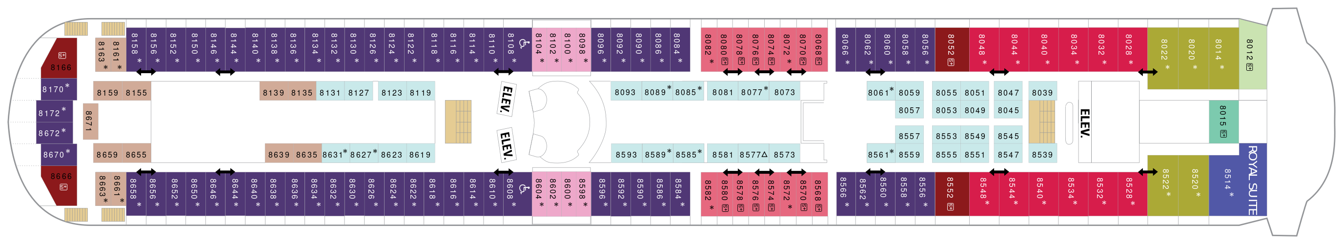 Select any deck plan to see more details. Once clicked, hover over the image to zoom.- Spacious Ocean View (x2 Accessible Staterooms)