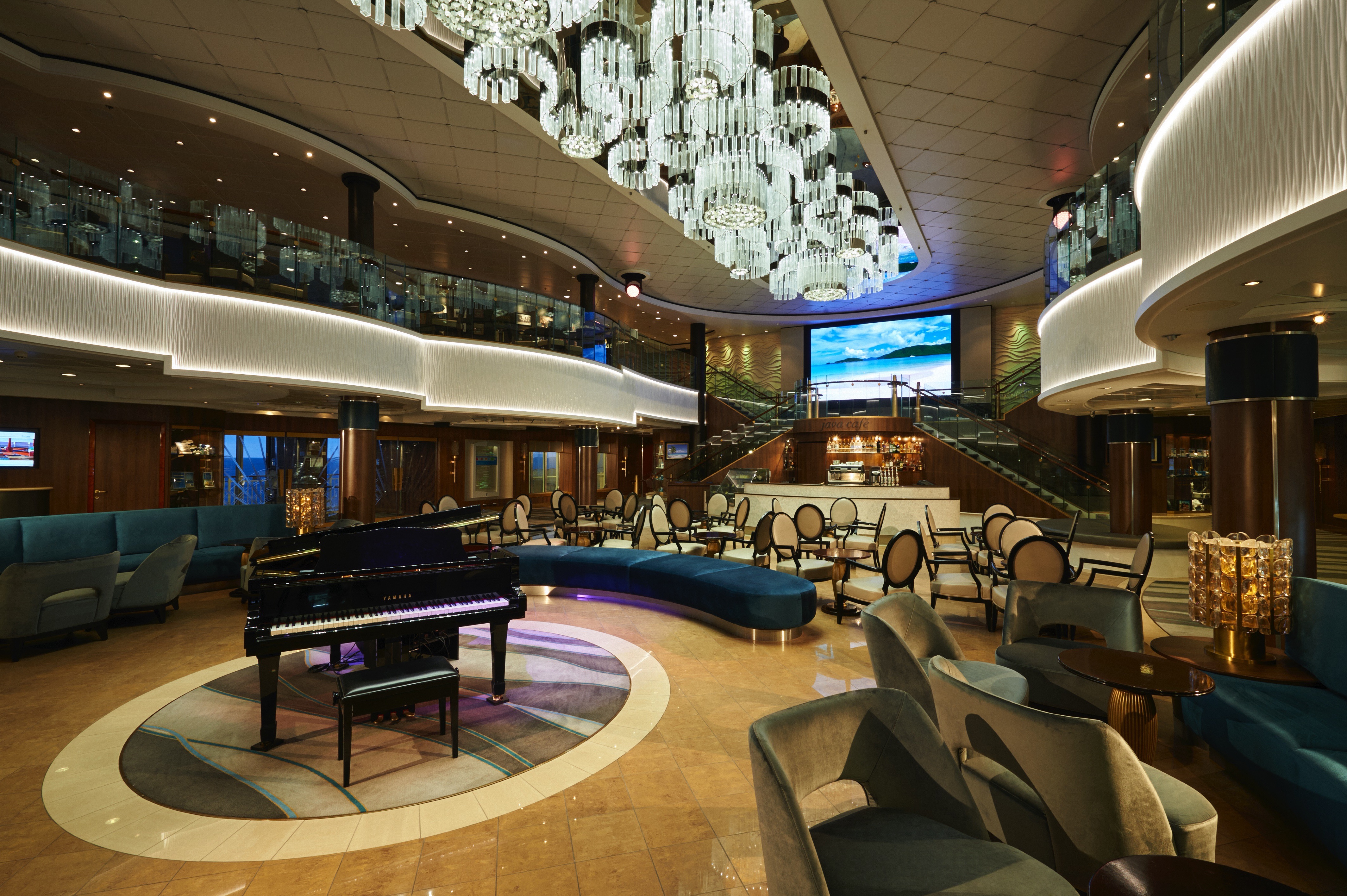 Dive into the shimmering pool and hot tubs nearby. Topsiders Bar & Grill is located poolside along with 323 deck chairs and 144 sun lounges.