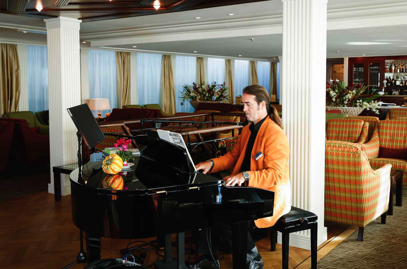 Whether it’s a folkloric performance, local quartet, serenade of Parisian classics or modern piano favourites, there is an eclectic schedule of entertainment on board.