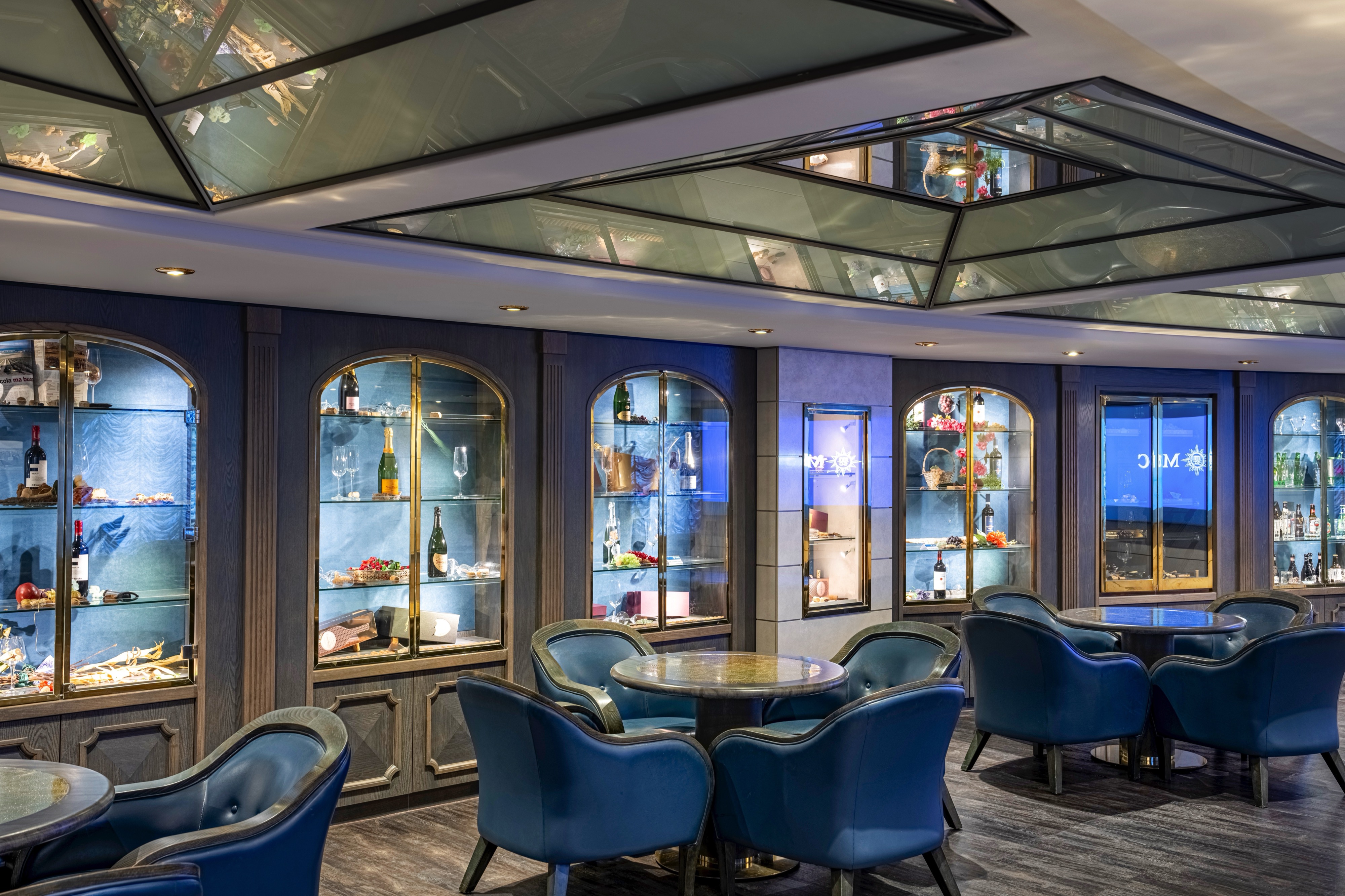 The Lounge and Wine Tasting Bar with tapas and live music and can be found on deck 7 of the ship with seating for 135 guests.
