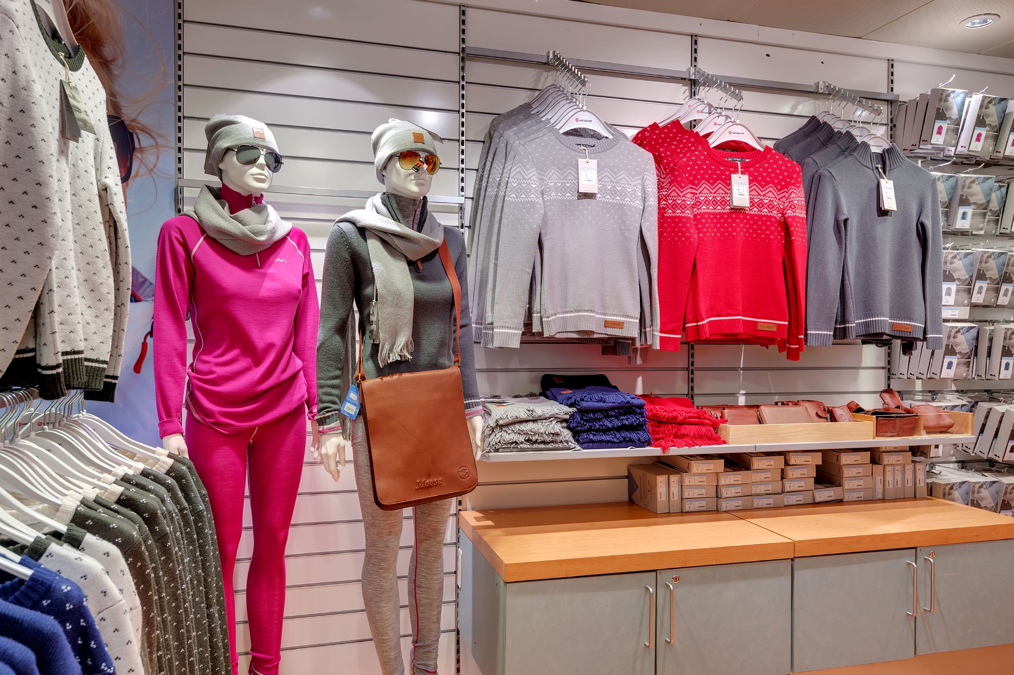 We offer a great range of both warm and practical clothing, and we focus on fabrics with natural fibres. We also offer souvenirs, handicrafts, and postcards. In addition, we also stock a small selection of soap, toothpaste and other personal effects.