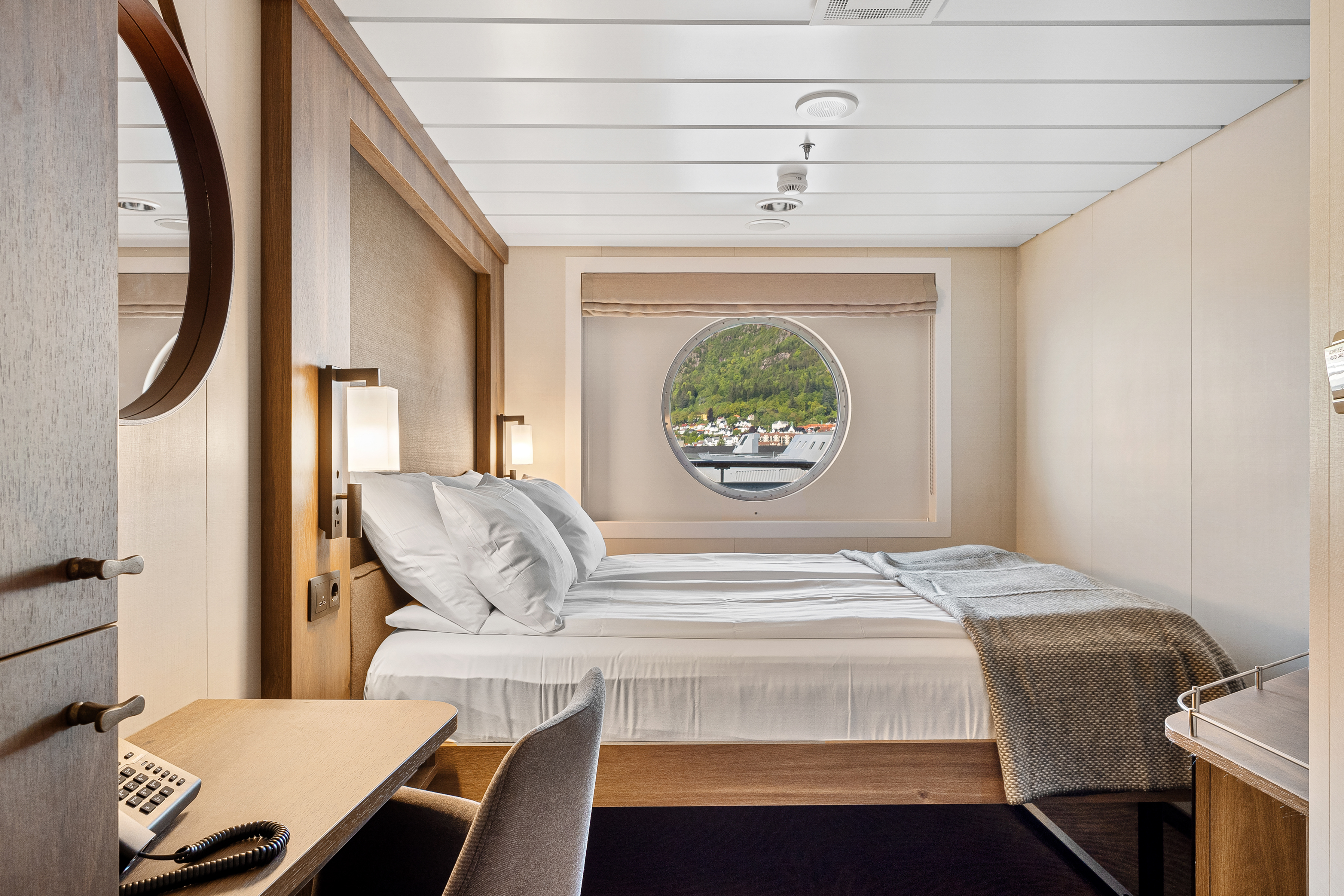 MS Trollfjord features modern comfort and facilities throughout. The ship hosts its own expedition team who present interesting∘ lectures both inside and out on deck. Have fun learning about the nature, wildlife, culture and history you see along the way. Topics depend on the season and where we sail in. MS Trollfjord's large, two-storey panorama lounge above the bow features wall-to-wall glass, allowing in lots of natural light and providing∘ extraordinary views of the passing scenery. The ship's sun deck and Jacuzzi are found on Deck 9. MS Trollfjord also exhibits original paintings that∘ were once aboard the old Hurtigruten ship, MS Harald Jarl.