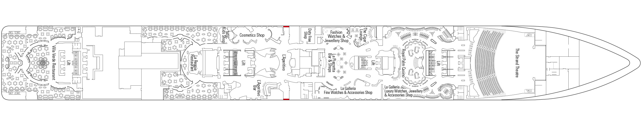 Select any deck plan to see more details. Once clicked, hover over the image to zoom.- La Reggia Restaurant