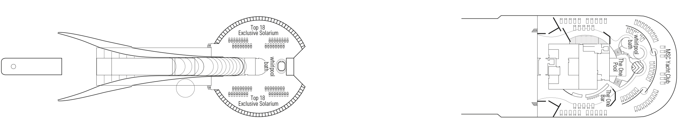 Luxurious accommodation and exclusive services are only the beginning. The MSC Yacht Club also boasts a range of superb private areas, from the elegant Top Sail Lounge with its panoramic views to the stylish restaurant and the One Pool Deck complete with private swimming pool, whirlpool baths, sun deck and bar.