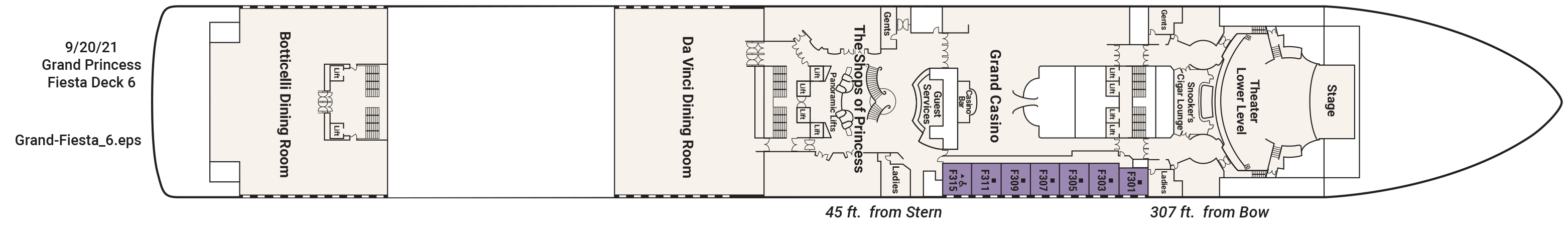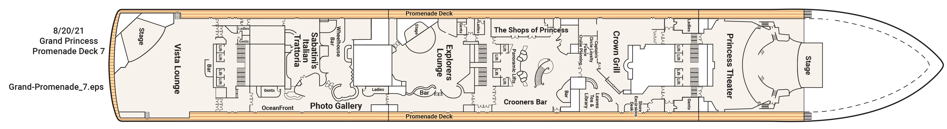 It is located on the 6th Deck outside the lower level of the Princess Theatre.