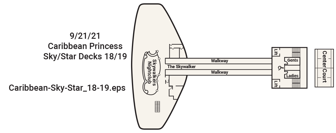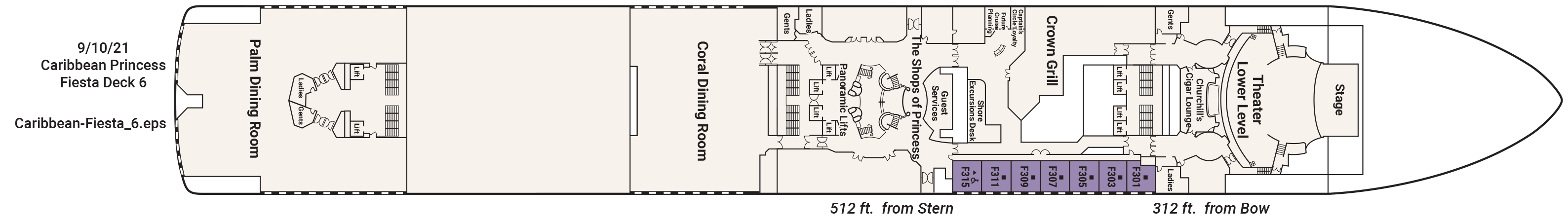 It is located on the 6th Deck outside the lower level of the Princess Theatre.