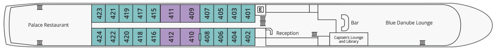 The 130-passenger River Duchess is decorated in soft hues of blue and green complemented by soothing earth tones, providing a tranquil and elegant onboard ambiance. Enjoy spectacular∘ and ever-changing views of Europe’s most enchanting waterways in the ship’s stylish Blue Danube Lounge, Palace Restaurant, or the La Motte Sky Lounge.