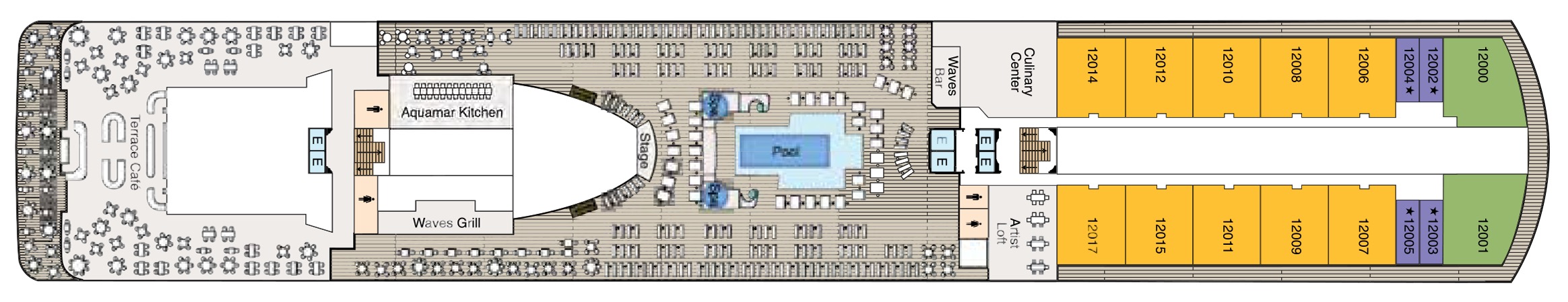 Sit back, relax and enjoy the stunning panoramic ocean views in the shaded, comfortable Patio as you sail to the next exciting destination.