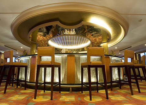This spacious bar area, featuring large picture windows and about three dozen small tables with comfortable chairs, is an excellent place to relax over a drink and enjoy conversation or a book while you watch the scenery, or meet up with friends before and after meals. It is located on the same level as the Suites. The 24-hour coffee station is adjacent to the Observation Lounge, so you can enjoy a delicious coffee drink or get something from the Lounge Bar.