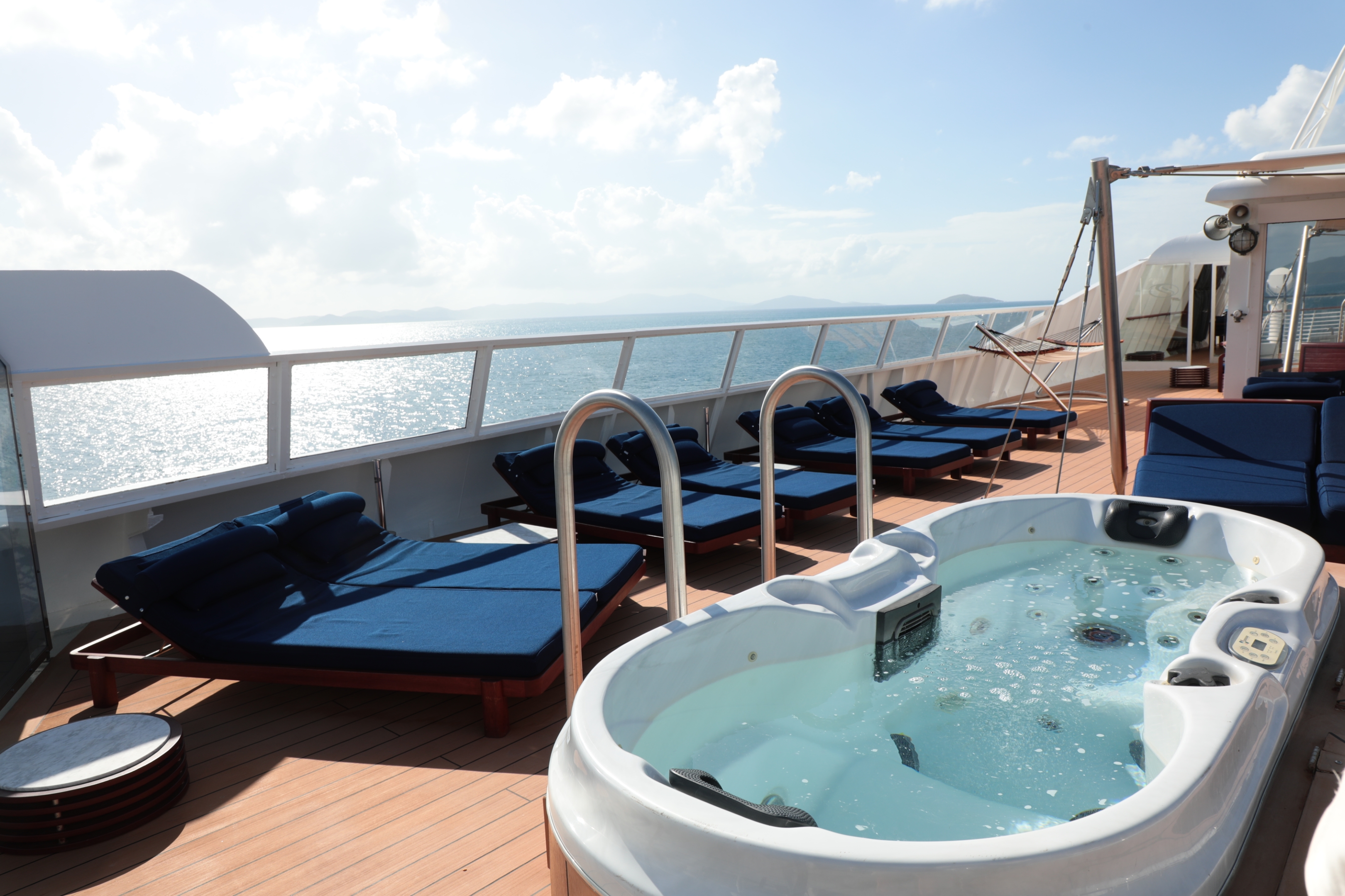 The generous teak decks and lounge chairs are waiting for you pool side. A saltwater pool and fresh water Jacuzzi®, fresh towels, refreshing drinks and cocktails served by SeaDream’s award-winning crew will ensure you will enjoy your time spent on deck.