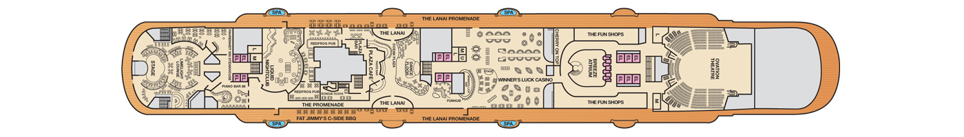 Here’s where you come in! The Atrium — the entrance to the ship and to vacation itself — is your first impression of all the fun to come. We make sure that this, the very heart of the ship, screams “welcome aboard the fun!” With multi-level panoramic views, the Atrium gives you the perfect place to enjoy all the hustle and bustle. There’s always music playing here, whether it’s a live band or a party-pumping DJ, plus enjoy events throughout the day or a drink at the bar, anytime. This 360-degree funspot is also home to the Guest Services desk, the place you go if you have questions for one of our certified fun experts… about just about anything that’s on your mind.