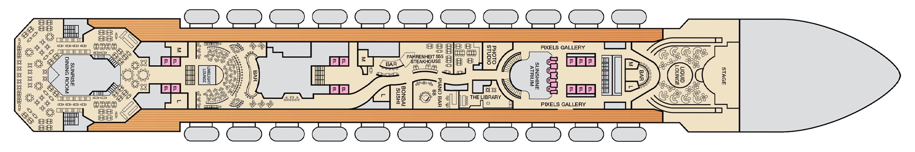 Select any deck plan to see more details. Once clicked, hover over the image to zoom.- Sunrise Dining Room